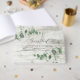 Magnifique design de mariage avec feuillage d'eucalyptus délicat. Fait partie d'une collection moderne. support en bois blanc