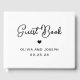 Ce livre d'hôtes mariage simple et élégant, noir et blanc, présente une typographie de style vintage et fantaisiste et un coeur assorti. Un style élégant, classique et minimaliste qui reste unique et contemporain.