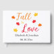 Chute en amour cadeaux d'évènements personnalisés avec palette de couleurs d'automne rouge, orange et jaune avec feuilles d'érable. Le texte peut être customisé pour un mariage, une douche nuptiale, un baby shower ou tout autre événement
