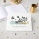 Tropical Coastal Palm Trees Sketch Watercolor Theme Collection.- c'est un script élégant Sketchy aquarelle Illustration du paradis côtier, palmiers de plage, cottage- vert vif en couleur, avec le fond de la chaîne de montagnes bleu ciel. Idéal pour vos mariages et fêtes de destination côtière hawaïenne et mexicaine. Il est très facile de customiser, avec vos données personnelles. Si vous avez besoin d'un autre produit correspondant ou de la personnalisation, veuillez envoyer un message via Zazzle.