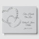 This wedding guest book is shown in a silver-grey color with a two hearts one love theme print shown with silver tone hearts with crystals and has silver colored text.