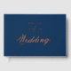 Un bel livre d'or rose mariage en feuille d'or avec typographie de script traditionnelle. Un superbe design de livre d'or bleu marine et rose mariage avec une typographie minimaliste classe. La typographie de script traditionnel crée un design élégant et intemporel de feuille d'or rose mariage livre d'invités.