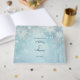 Célébrez le couple heureux avec un merveilleux pays d'hiver! Des flocons de neige et des lumières scintillantes se dispersent parmi un arrière - plan bleu pâle dans un subtil bois d'hiver pour apporter la beauté de l'hiver à l'intérieur pour votre célébration. Réalise un livre d'or impressionnant et chatoyant pour votre mariage d'hiver ou tout autre événement hivernal au pays des merveilles. Disponible avec des produits correspondants.