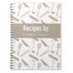 Un carnet moderne et chic pour prendre notes vos recettes. Il vient avec des batteries de cuisine généralement trouvées dans la cuisine disposée dans un motif. Elles incluent les articles comme la spatule, battent, la goupille, la poche et le couteau. Personnalisez le texte sur la couverture. Grand pour les cuisiniers et les chefs à la maison.