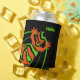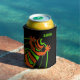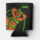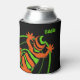 Colourful lizard print personalized can cooler. Black can cooler with a bright orange and green gecko lizard design. Add your own name to customise (or delete the text if not required).