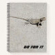 A lizard paused on a grey sidewalk for his photo to be taken. This photo is displayed on both the front and back of this notebook. "Go For It" is the phrase in the lower right corner and can be customized with your own phrase, name, or title. Perfect for back to school.