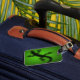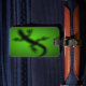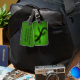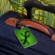 A silhouette of a lizard shows through a bright green leaf. The back has customizable text for further identification.