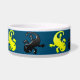 This pet bowl has lizards pictured on it.
