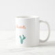 Cute lama, cactus and fiesta theme. Beige coloured llamas and green cacti on a white background. Template for Your name, peach coloured letters in a hand-lettered style script.