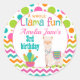 A fabulous colourful polka dot and ZigZag sticker for your whole Llama fun birthday party. Bright pinks, teals and orange make this a eye catching design. Perfect for all ages. Matching party supplies are available.
