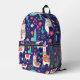 This vibrant and cheerful image features a repeating pattern of adorable llamas adorned with colourful blankets and tassels. They are surrounded by blooming cacti, desert flowers, and lush foliage, all set against a deep blue background. The overall effect is playful, festive, and full of life.