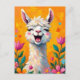 Brighten up your space with this vibrant and joyful llama illustration! Featuring a cheerful white llama with rosy cheeks and a wide, toothy grin, this whimsical artwork is set against a sunny orange background bursting with colourful flowers. Pink tulips, cheerful daisies, and leafy greenery frame the happy llama, creating a heartwarming and playful vibe that’s sure to make anyone smile. The painterly texture and bold colours bring the scene to life.