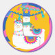 Llama Purple Blue Yellow Colourful Birthday Party Classic Round Sticker
