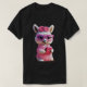 Un design ludique et élégant de T-shirt lama avec un lama joyeux, de style dessin animé, portant des lunettes de soleil et une couronne de fleurs. L'arrière - plan présente des motifs géométriques aux couleurs pastel et vibrantes, ajoutant une ambiance ludique. Parfait pour les amoureux des animaux et les amateurs de mode décalée et légère !