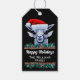This is an adorable Christmas gift tag featuring the face of an adorable llama wearing a Santa hat with a Christmas border and text. The text on the tag can be customized with your own details.
