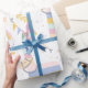 This cute and trendy wrapping paper feature llamas and rainbows in pastels colours. It's the perfect wrapping paper for a baby shower gift or a child's birthday.