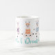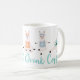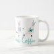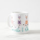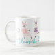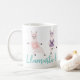 Cute and fun yoga llamas coffee mug design. Featuring our cute & fun llama yoga characters in various yoga poses. The llamas are wearing a different coloured tank top and a headband. Personalize with a monogram on the llama's shirt. "Llamaste & Drink Coffee" catchphrase along the bottom of the mug in a wrap-around design. All illustrations are hand-drawn artwork by Moodthology Papery.