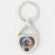 A metal key that captures a moving scene: a fallen rabbit with glowing, sad eyes is in the rain. Its small, curved body conveys a sense of melancholy, while the fine lines etched on the metal represent the drops that fall around it. On the scene, in delicate lyrics, "I miss you" reads like a silent whisper trapped in the storm. The gray blue background, with silver reflexes, reinforces the sensation of melancholy, turning this key ring into more than just an accessory: it is a reminder of someone special, a small amulet that expresses absence with sweetness and sensitivity.