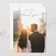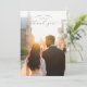 This elegant wedding thank you card features a warm, romantic photo design with soft golden lighting that evokes a sense of love and gratitude. The composition is simple yet sophisticated, focusing on the couple from behind as they walk together, creating an intimate and timeless feel. The typography is stylish and cursive, adding to the overall charm and personal touch. Perfect for expressing heartfelt thanks after your special day, this design captures the joyous mood of celebration and connection. Customize it effortlessly to make it uniquely yours.