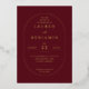 This elegant wedding invitation features a sophisticated maroon and gold color palette, exuding timeless charm and luxury. The design is centered around an oval frame with clean lines, highlighting the text in a classic serif font that adds to its refined appeal. Perfect for a formal celebration, this invitation sets a warm and inviting tone, ideal for marking a special occasion like a wedding. Its customizable layout allows you to personalize it with your details, making it a versatile choice for any couple looking to create a memorable keepsake.