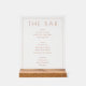 This elegant wedding menu design exudes a sophisticated and timeless charm with its clean, minimalist layout. The typography is modern yet classic, featuring simple lines that enhance readability while maintaining an air of refinement. A soft coral hue adds a touch of warmth against the crisp white background, creating a harmonious color palette perfect for a chic celebration. Ideal for couples aiming to convey elegance and simplicity on their special day, this design effortlessly complements any formal or semi-formal wedding theme.