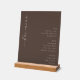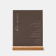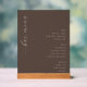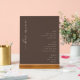 This elegant bar menu design exudes a sophisticated and timeless charm, perfect for wedding receptions or upscale events. The minimalist layout features an understated brown background with refined white typography that lists various beverage options, including beer, wine, and spirits. The cursive "bar menu" script adds a touch of elegance, while the clean lines and simple color palette create a harmonious and inviting atmosphere. Ideal for couples seeking to add a classic yet modern flair to their special day, this design ensures guests can easily navigate drink choices in style.