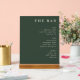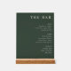 This elegant wedding menu design exudes sophistication with its clean, minimalist style and muted green color palette. The text is presented in a classic serif font, adding an air of timeless elegance to the overall look. Perfect for a refined celebration, this menu features categories like beer, wine, and spirits, each listed with simple yet stylish typography. Its understated charm makes it ideal for couples aiming for a chic and modern reception ambiance.
