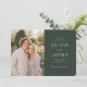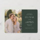 This elegant wedding save the date design features a soft, romantic aesthetic with a lush garden backdrop. The layout combines a beautiful photo area for your special moment with sophisticated typography on a rich green background, creating an inviting and timeless feel. Perfect for couples looking to announce their upcoming nuptials in style, this design exudes warmth and charm, setting the tone for a memorable celebration. Customize it effortlessly to reflect your unique story and share the joy of your engagement with loved ones.