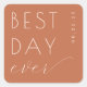 This design captures a warm and elegant aesthetic with its soft terracotta background, complemented by clean, modern typography. The phrase "Best Day Ever" is elegantly scripted in white, creating an inviting and celebratory mood perfect for marking special occasions like weddings or anniversaries. The minimalist layout allows the text to stand out prominently, making it ideal for wedding stickers that convey joy and significance. Its simple yet sophisticated style ensures versatility, fitting seamlessly into various romantic and memorable moments.