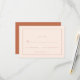 This elegant wedding RSVP card features a minimalist and modern design with a warm, muted terracotta background. The clean lines and simple typography create an inviting yet sophisticated look, perfect for couples who appreciate understated elegance. With customizable text areas for personalization, it seamlessly fits into the joyous occasion of celebrating love and commitment. Its timeless style ensures it will complement any wedding theme while maintaining a heartfelt and refined tone.