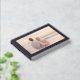This wedding guest book features a romantic photo design with a soft, dreamy finish that captures the essence of a serene beach sunset. The layout is elegantly framed in black with gold typography, adding a touch of sophistication and warmth to the overall aesthetic. Perfect for couples who cherish intimate moments by the sea, this design evokes feelings of love and tranquility, making it an ideal keepsake for guests to sign on your special day.