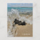 A beautiful view of waves crushing on a rock on the beach on Lobos Island in the Canary Islands printed on a postcard.