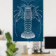 Blueprint style artwork created from an old drawing approximately 200 years old of a Rock Lobster.