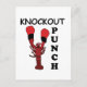 Lobster Boxing Knockout Punch Postcard designed by Nisha Prabhu. Red Lobster illustration in boxing hand wrap with text ''Knockout Punch''. Send a punch of fun with our Lobster Boxing Knockout Punch Postcard! This playful design features a determined lobster throwing a knockout punch, making it a unique and eye-catching way to send your greetings or well wishes. Whether you're a boxing enthusiast or just love marine life, this postcard is sure to stand out and bring a smile to the recipient's face. Share some fighting spirit and humour with this fun and memorable postcard!