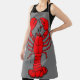 Apron with image of red lobster against a grey background.