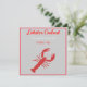 Lobster cookout invitation with a red graphic lobster( from Zazzle fonts).Invitation template by Alma Wad. Customize it with the details of your own lobster party .