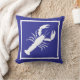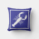 A white Sea Lobster on a navy blue pillow for a summer or beach house or any place with a nautical theme