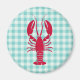 Fun kitchen magnet that goes with all sorts of coastal and summer decor themes! Design features red lobster silhouette on blue gingham background
