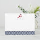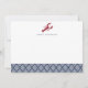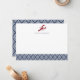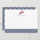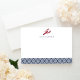 Use these chic flat cards for all your correspondence! Personalized design features a red lobster illustration and your name or monogram with a patterned bottom border in classic nautical navy blue and white. Comes with plain white envelopes.
