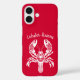Vivid cherry red background for a punchy, standout look, White lobster artwork with tropical floral and heart details, Slim yet durable construction to protect your iPhone in style, Perfect gift for coastal style lovers, fishermen, and island dreamers