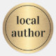Stickers featuring featuring the text "local author" surrounded by a thin black border on a printed image golden gradient background. Elegant font.