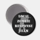 Local Zombie Response Team. In case of zombie attacks, you're part of the local zombie response team! Fun zombie design. Customizable if you'd like to add text, such as the name of the town you'll be defending! Choose your background colours on the buttons, mugs, stickers, mousepads and more. All products available in bulk.