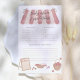 A baby shower game to match our "Locally Grown Baby Farmer's Market Baby Shower" collection. This cute design features a watercolor market awning with the words "Baby advice and predictions". In the bottom left-hand corner there is a board with space for the guest to write their name. Along the bottom of the sheet there are hand painted strawberries, doodle bread, green grapes, and a basket of apples. View the collection linked on this page for matching items or visit our store for more baby shower games.