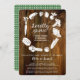 This vegetable themed baby shower invitation is locally grown with love and 100% organic! This invite has charming white hand drawn veggies tossed around in a circle with plenty of room for your names and invitation information below. Background is natural woodgrain. Reverse side is green rattan pattern. Perfect way to announce your little one's baby shower party!