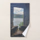 It was advertised as NAVY blue and the color sent was greenish blue. I am disappointed in this product. Quality and printing are great as are all my other orders. As you can see in picture the tea towel on right is perfect, hand towel not so much! Print was awesome and just as ordered