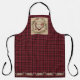 "Lodge Merry Christmas Deer Antler Buffalo Check." Lovely mountain lodge style holiday, rustic lodge style Christmas apron says, "Merry Christmas!" A silhouette of a deer with antlers and Christmas ornaments hanging on them with stylized leaf foliage, stars, retro style ornaments and a berry wreath over rustic light wood background. The rest of the apron is filled with a red and black buffalo check plaid background. Art painted by internationally licensed artist and designer, Audrey Jeanne Roberts, copyright.