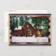 Log Cabin House Home Rural Rustic Linen + Flag Postcard