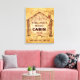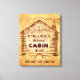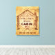 Add your family name to this custom cabin wall canvas. The rustic graphic design has a swirled, faux wood look that gets lighter in the middle. Inside the old-fashioned cabin drawing - derived from a vintage advertisement from the early 1900's - you can add your name, and even change the word "cabin" to "lodge" or any other word you'd like. Below the cabin image, add another line of customized text, such as the year you built or bought your cabin. The design is done in shades of beige, brown and dark red. The log cabin also includes the small text, "A home of your own is a home indeed," on the roof. "Customize it" to change fonts / sizes & rearrange elements. Check all angles of your canvas to make sure the design looks the way you want it. See matching items in our store!