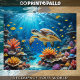 Loggerhead sea turtle diving in reef and corals tissue paper