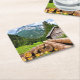 Logging Camp in the Forest with Mountains Square Paper Coaster